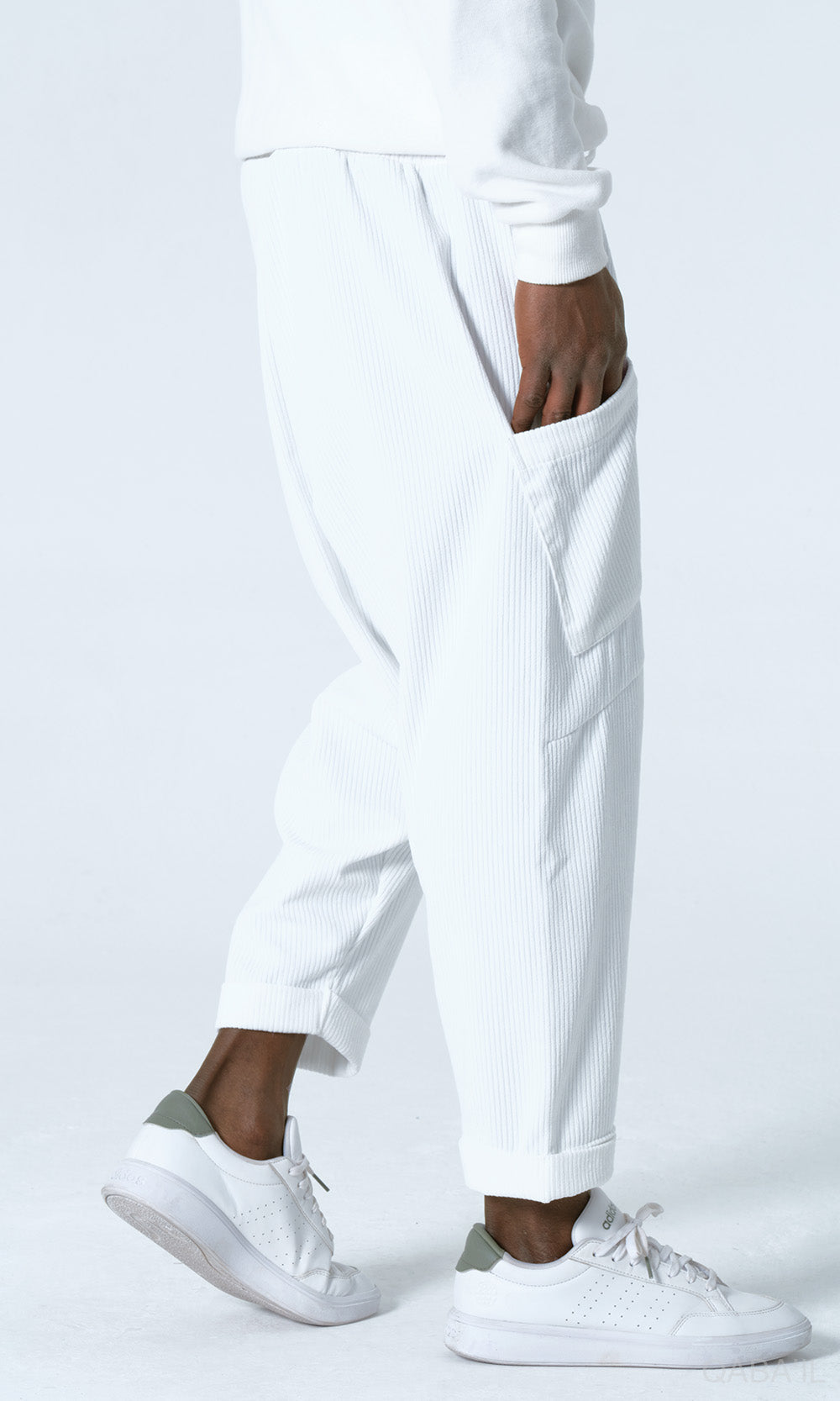 De QL Ribbed Sarouel is een onmisbaar item voor elke dag, ontworpen voor comfort, bedekking en een moeiteloze stijl. Gemaakt van een zachte ribstof met een subtiele textuur, voelt hij prettig aan op de huid en is hij comfortabel om de hele dag te dragen. De elastische tailleband met verstelbaar trekkoord zorgt voor een veilige en comfortabele pasvorm, terwijl de twee zijzakken extra praktisch gemak bieden.